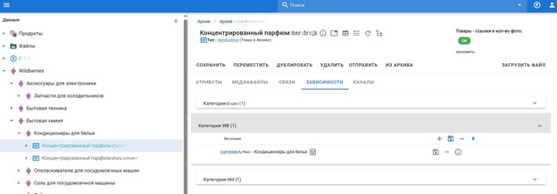 В OpenPIM® структура категорий Wildberries хранится отдельно от внутреннего каталога компании.