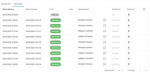Во вкладке «Запуски» хранится вся история операций: