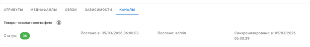 Также в карточке товара во вкладке «Каналы» отображаются статусы всех каналов, куда был отправлен конкретный товар.